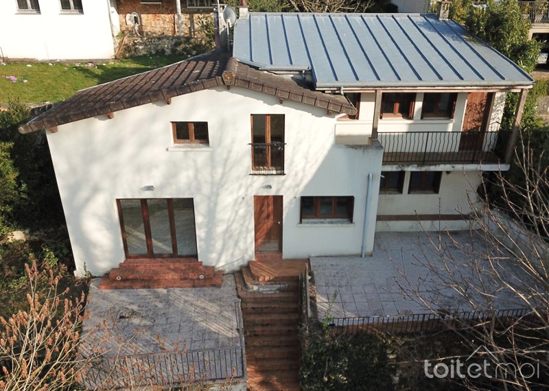 Elle comprend au rez-de-chaussée un salon, une salle à manger avec cheminée, et une cuisine semi-ouverte. L'étage comprend 2 grandes chambres, dont une avec balcon, un bureau ou chambre d'enfant, une salle de bains, et des toilettes (possibilité de salle d'eau). Elle dispose enfin de 2 grandes terrasses, et d'un garage indépendant, aménageable en atelier. Stationnement et clôture sur rue sont à créer.