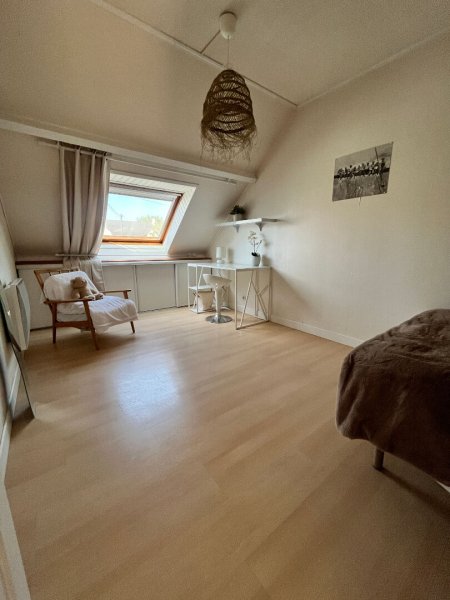 - À l'étage : un palier avec mezzanine desservant 4 belles chambres et une salle d'eau avec WC.