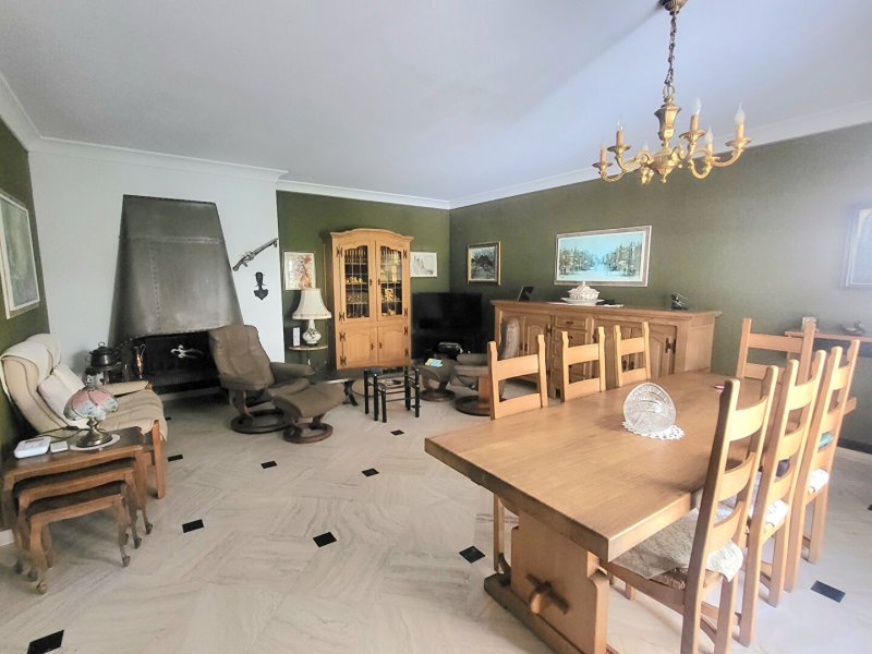 Le rez-de-chaussée dispose d'une cuisine équipée ouverte sur une terrasse conviviale, un séjour lumineux de plus de 33 m² avec cheminée, trois chambres confortables, une salle de bains et des toilettes indépendantes.