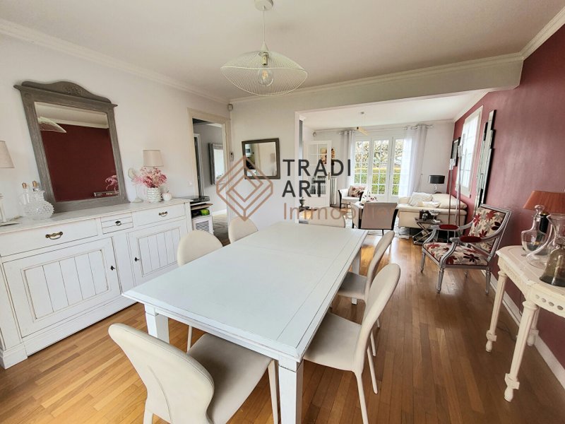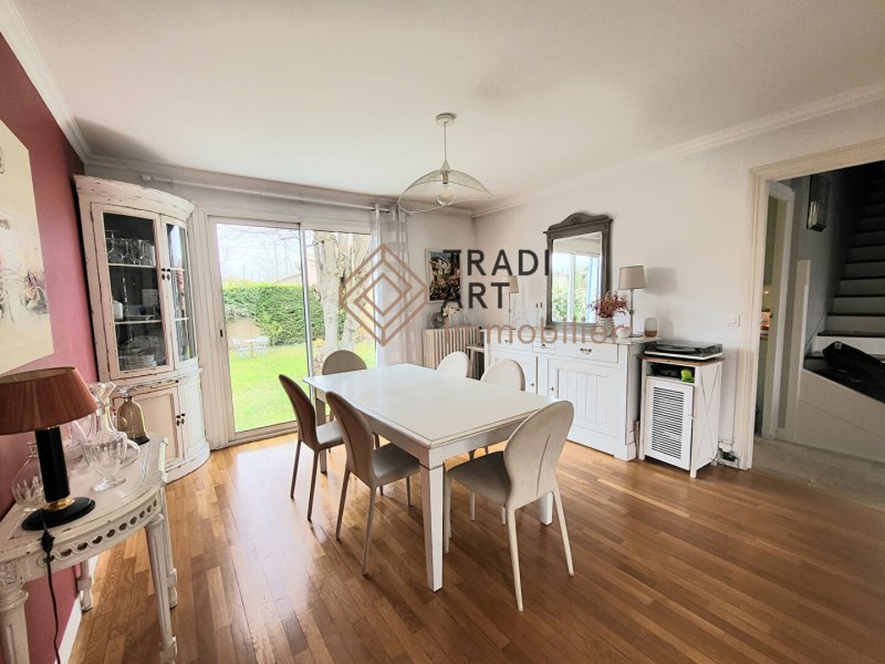 Elle se compose au rez-de-chaussée d'une belle entrée, d'une salle à manger, d'un séjour double avec cheminée et accès jardin, d'une cuisine aménagée et équipée (possibilité d'ouvrir sur la pièce de vie), un dégagement desservant l'espace nuit avec chambre, dressing, salle d'eau ainsi que d'un WC indépendant.