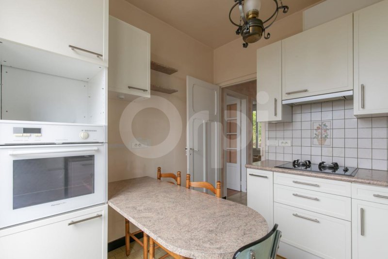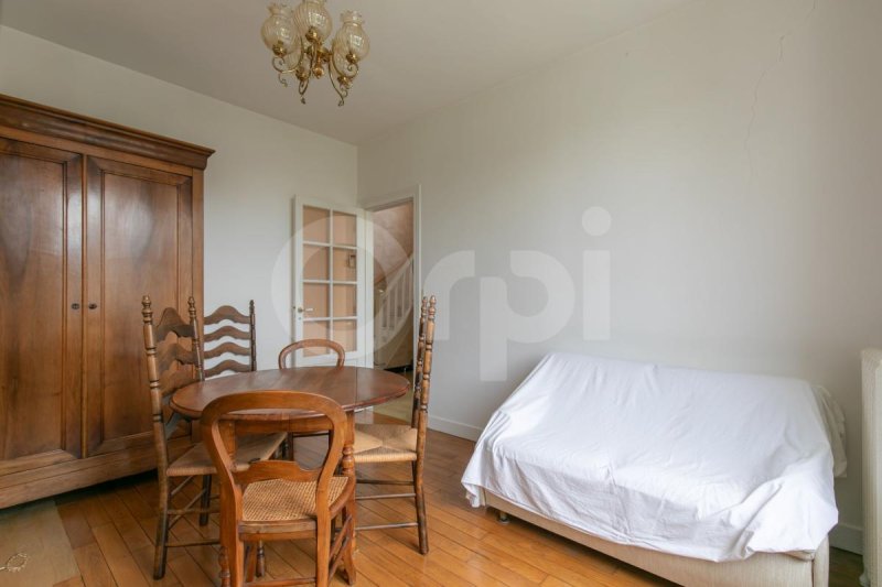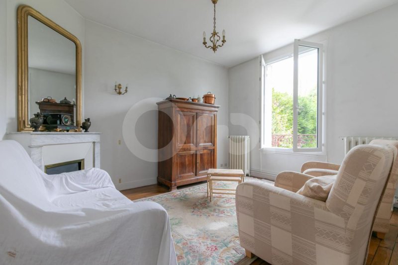 Maison en meulière en bon état dans un quartier calme et pavillonnaire, entre le centre-ville et la gare RER. Elevée sur cave totale parfaitement saine avec chauffage gaz, buanderie, cave à vin, atelier. Au rez-de-chaussée entrée, salon, cuisine, chambre ou séjour, salle d'eau, WC. Au premier étage palier desservant deux chambres de 11m² chacune dont une à usage de bureau, greniers latéraux aménagés. Le tout sur jardin exposé est/ouest avec garage et cellier en dépendance. Potentiel d'agrandissement évident.