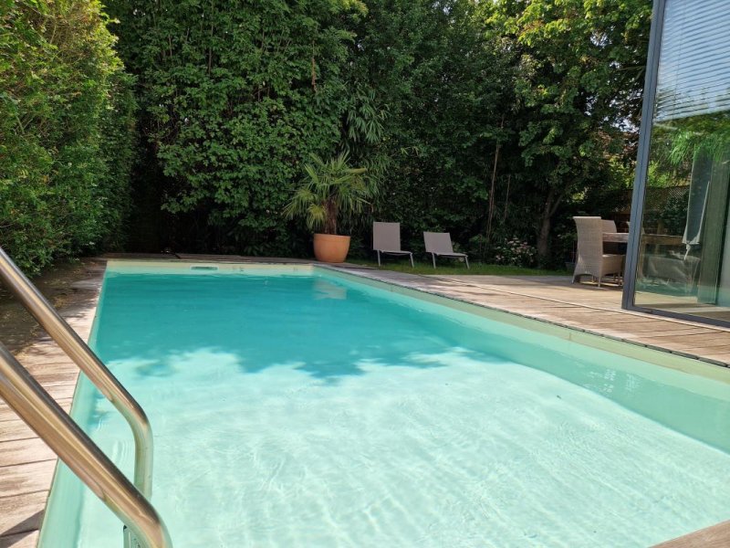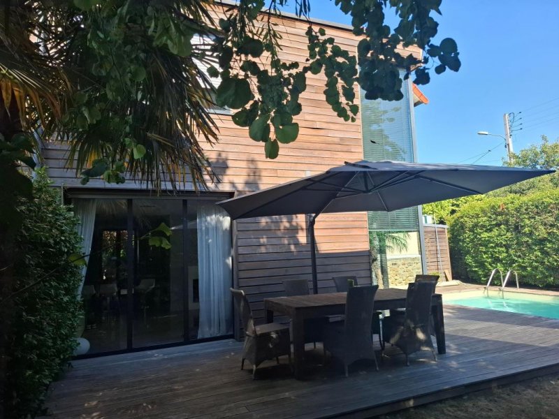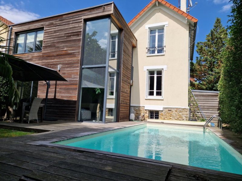Venez découvrir cette maison ancienne entièrement reconditionnée suite à un agrandissement moderne ouvert sur le jardin. Les espaces sont communiquant au rez-de-chaussée. Le hall d'entrée s'ouvre sur la réception moderne avec accès direct sur le jardin par de grandes baies vitrées. La cuisine professionnelle est ouverte avec un coin repas et est entièrement équipée. La salle à manger très cosy est indépendante. Au premier étage un palier mezzanine fait la liaison entre la maison ancienne avec trois chambres dont une petite, salle d'eau et WC et dans la partie neuve suite parentale, dressing, salle de bains avec douche et WC. Le jardin est intimiste, sans vis-à-vis et très bien organisé car d'un côté vous avez le style ancien avec gravillons et haies anciennes et de l'autre dans la verdure un deck entoure la piscine et permet de passer de bons moments entre la maison et le jardin engazonné.
