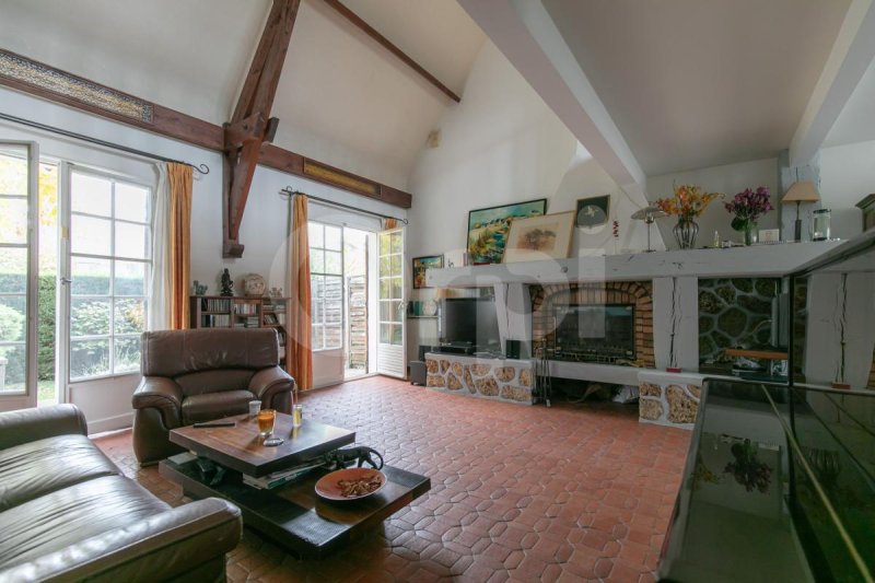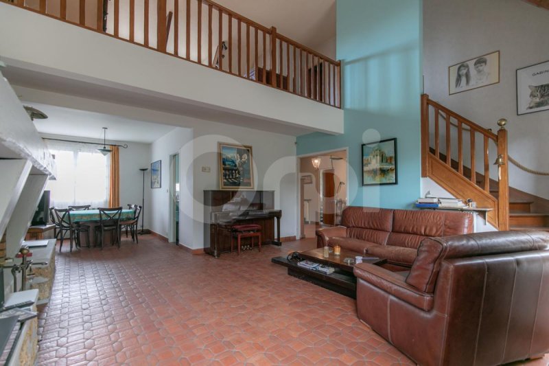 Nous vous proposons en exclusivité cette maison de 1973 originale et de construction traditionnelle. Vous découvrez un vaste hall avec placards et WC qui dessert le séjour avec grande hauteur sous plafond, accès direct sur la terrasse par portes fenêtres et le jardin arboré, la cuisine est récente et entièrement équipée avec matériaux de qualité. Au même niveau suite parentale avec salle de bains et placards, bureau ou chambre, WC. Au premier étage mezzanine, couloir desservant deux chambres, salle d'eau, WC, placards, grenier servant de duplex à l'une des deux chambres. Le sous-sol est incroyable car vous pouvez rentrer trois voitures, chaufferie, buanderie, cave.