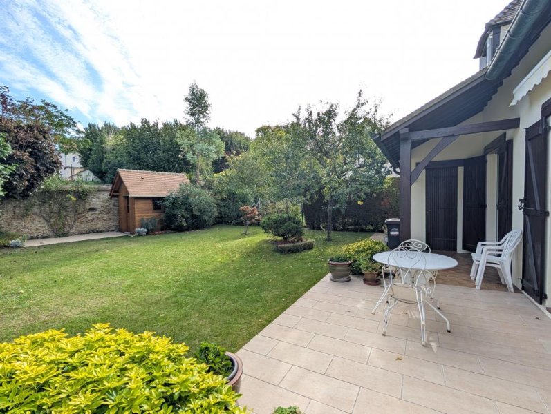 Au rez-de-chaussée, une entrée cathédrale, un séjour et salle à manger avec cheminée et accès sur la terrasse et le jardin, une grande cuisine avec accès jardin, une chambre 18m², une salle de bains et WC. A l'étage, un espace mezzanine avec placards, 4 chambres dont deux avec coin lavabo, une salle de bains et WC. Sous-sol total avec garage, atelier, rangements et cave. Dépendance dans le jardin. Gare RER, commerces et école à pied. Ravalement récent sous garantie décennale.