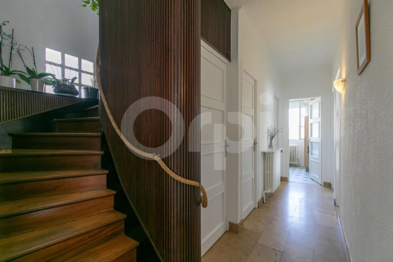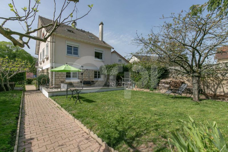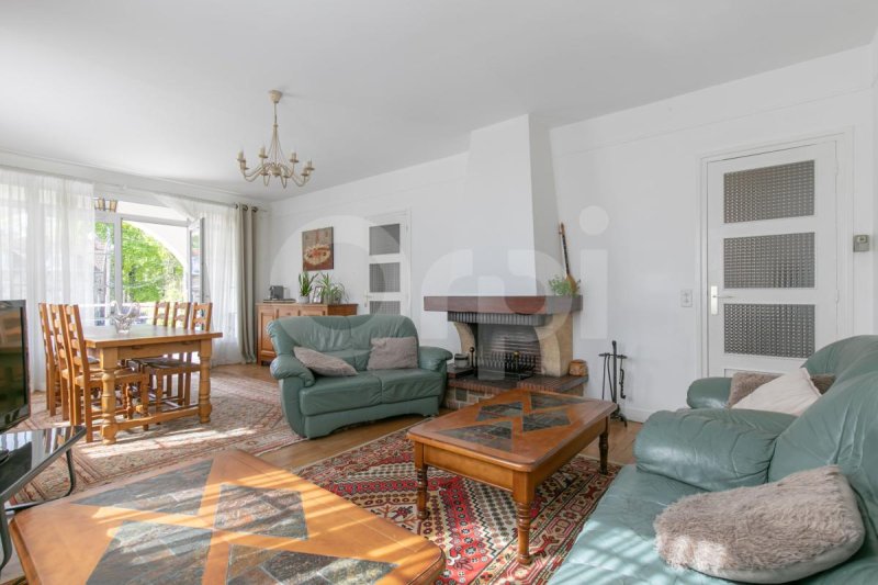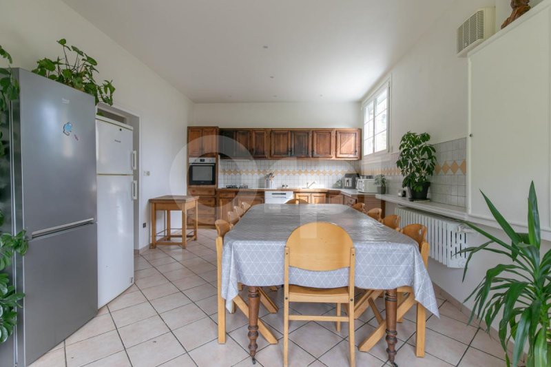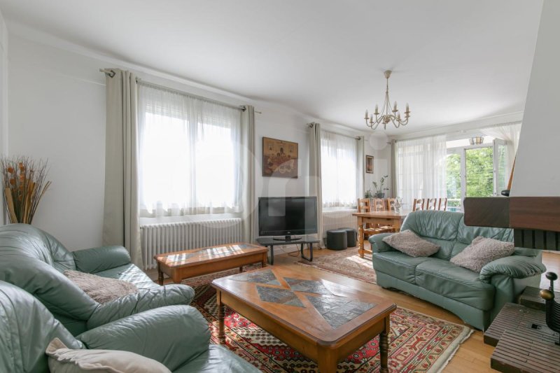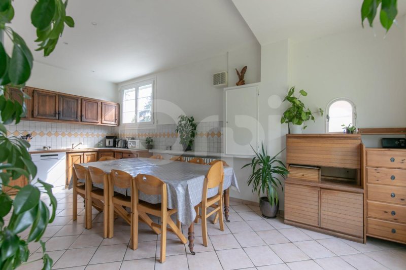 Séjour et salle à manger avec cheminée de 30m² avec accès terrasse et jardin, grande cuisine dinatoire de 25m², 7 chambres, 3 salles d'eaux, nombreux rangements. Plusieurs stationnements voitures. Double vitrage. Bus pour RER.
