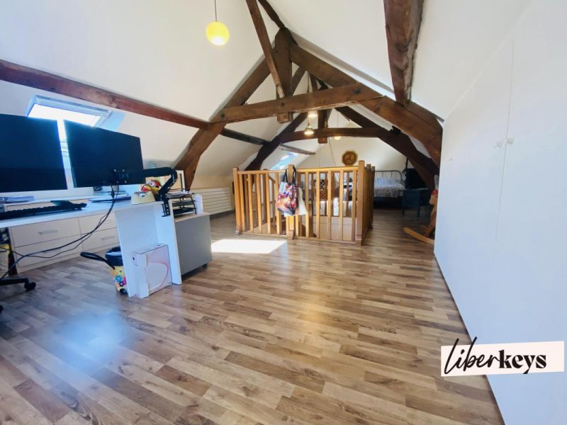Les combles sont aménagés en une belle chambre avec espace bureau , un espace coup de coeur atypique et spacieux.