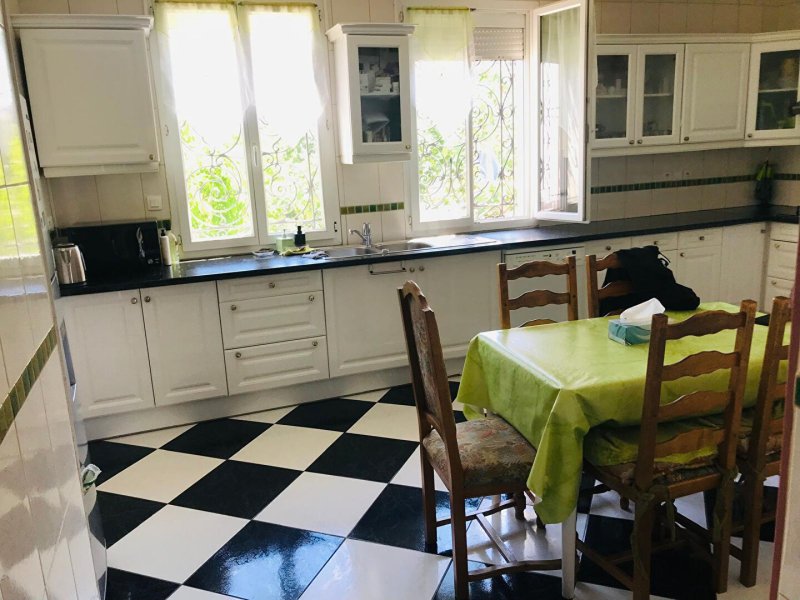 Une grande cuisine séparée équipée et aménagée avec débarras,