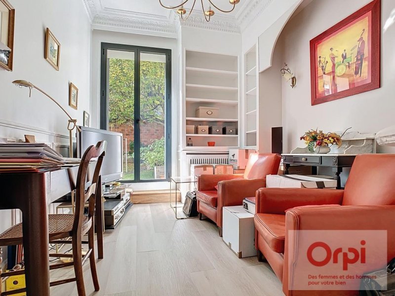 Au rez-de-chaussée d'une hauteur sous plafond de 3 mètres : belle entrée, séjour - salle à manger , cuisine avec accès de plain pied sur terrasse et jardin, bureau (pouvant faire office de chambre d'appoint ou être réunie à la cuisine pour disposer d'une vaste cuisine dinatoire), wc.