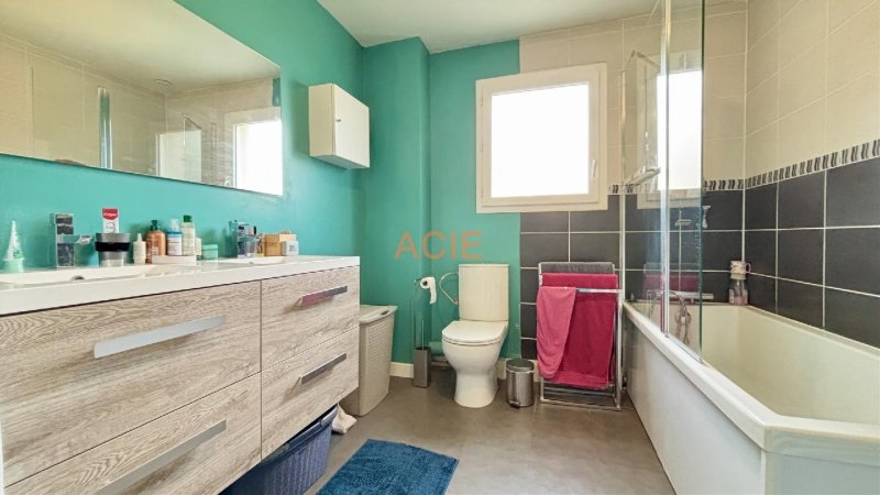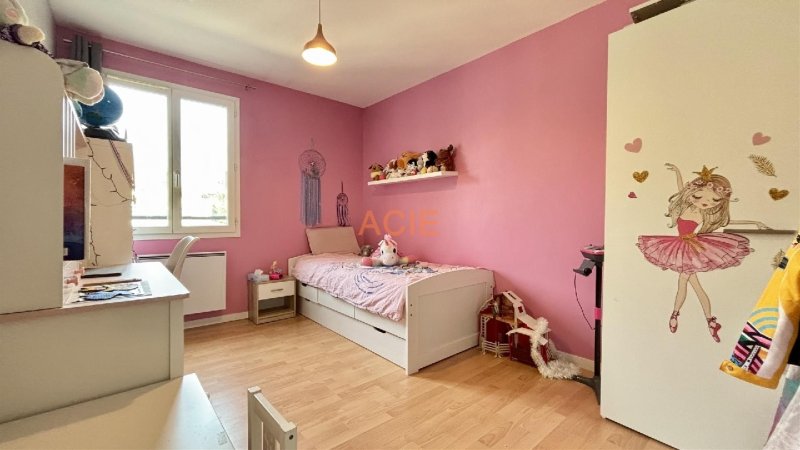 A l'étage: palier, deux chambres de 12 et 11m², salle de bains avec wc et espace pour les machines.
