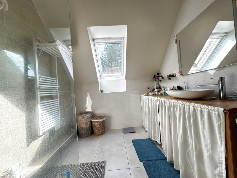 Dans une résidence sécurisée, belle maison individuelle de 2012 élevée sur 956 m2 de terrain comprenant vaste séjour salle à manger avec poële de masse et cuisine ouverte équipée, chambre, buanderie, wc. 1er étage: pièce palière ( coin bureau), 3 chambres dont une suite parentale avec dressing et salle d'eau, salle de bains et wc. Double vitrage PVC, Chauffre eau de 2023, adoucisseur d'eau, alarme. DPE C. Garage de 25 m2. Carport, abri de jardin et abri bois. 499 000 EUR Honoraires TTC inclus à la charge de l'acquéreur: 2.89% du prix du bien hors honoraires. Prix du bien hors honoraires: 485 000 EUR . les informations sur les risques auxquels ce bien est exposé sont disponibles sur le site Géorisques : www.géorisques.gouv.fr