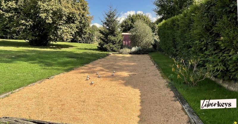 EXTERIEUR : Un grand jardin de 1900 m2 arboré et entièrement clos de mur, pergola, terrain de pétanque, jardin potager, poulailler, bûcher, un puits en eau (10 m).