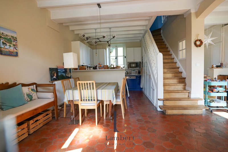C'est un pan de l'histoire de Verneuil qui s'ouvre devant vos yeux: issue de la réhabilitation des bâtiments de la ferme du château, cette maison, située en hyper-centre et entièrement rénovée, résonne encore des bruits de la vie au 19ème siècle. Elle offre de beaux volumes répartis sur 3 niveaux pour accueillir une famille (6 chambres de belles dimensions), 2 grandes pièces d'eau (avec bain et douche) et un espace de réception de près de 50m² entièrement ouvert (séjour, salle à manger, cuisine ouverte) tourné vers la lumière (exposition Sud) et ouvrant sur son jardin. Une cave et un emplacement de stationnement viennent compléter le tableau. Un bien rare pour amoureux de matériaux nobles.