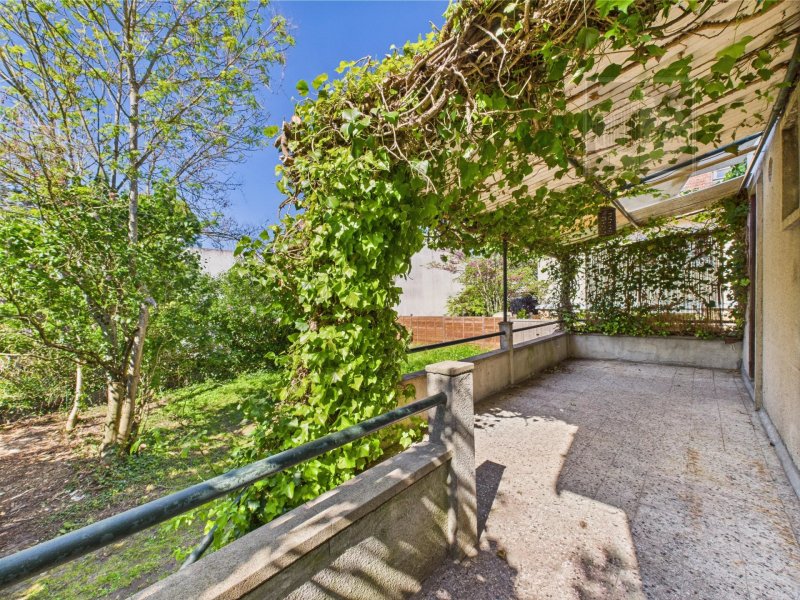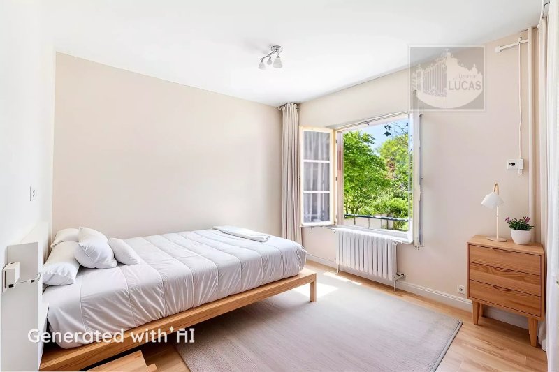 Édifiée sur un sous-sol total de plain-pied sur jardin, la maison se compose au rez-de-chaussée surélevé d’une entrée, d’un double séjour ouvrant sur une belle terrasse exposée sud-ouest sans vis-à-vis, d’une chambre et d’une cuisine.