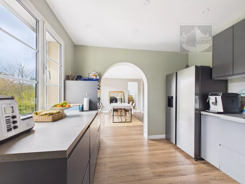 Le rez-de-chaussée se compose d'une entrée, d'un séjour de 38,80 m², d'un espace de 28 m² pouvant accueillir un salon télé / bibliothèque / bureau selon vos besoin, d'une cuisine, d'une chambre et d'une salle de douche avec toilettes.