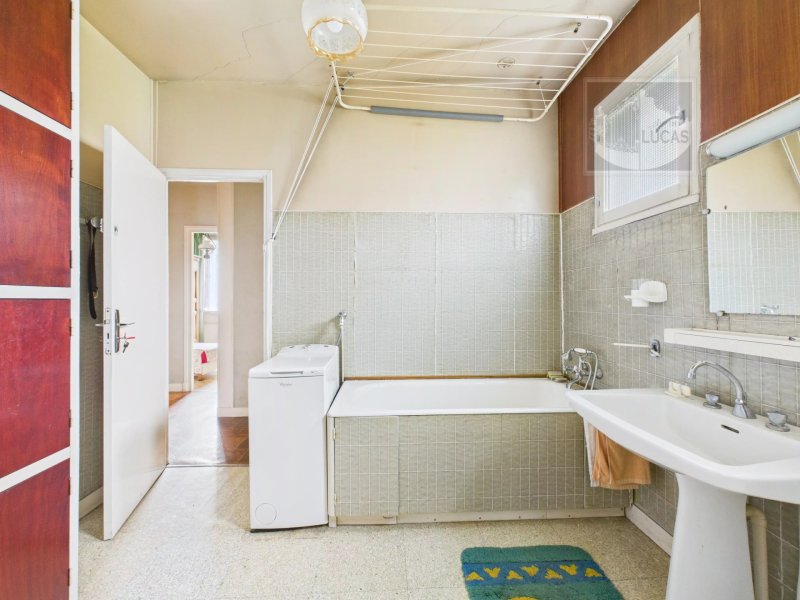 Sous-sol total avec chambre de service et salle d'eau avec wc, buanderie, garage.