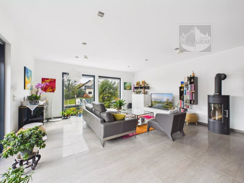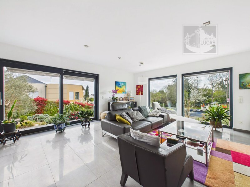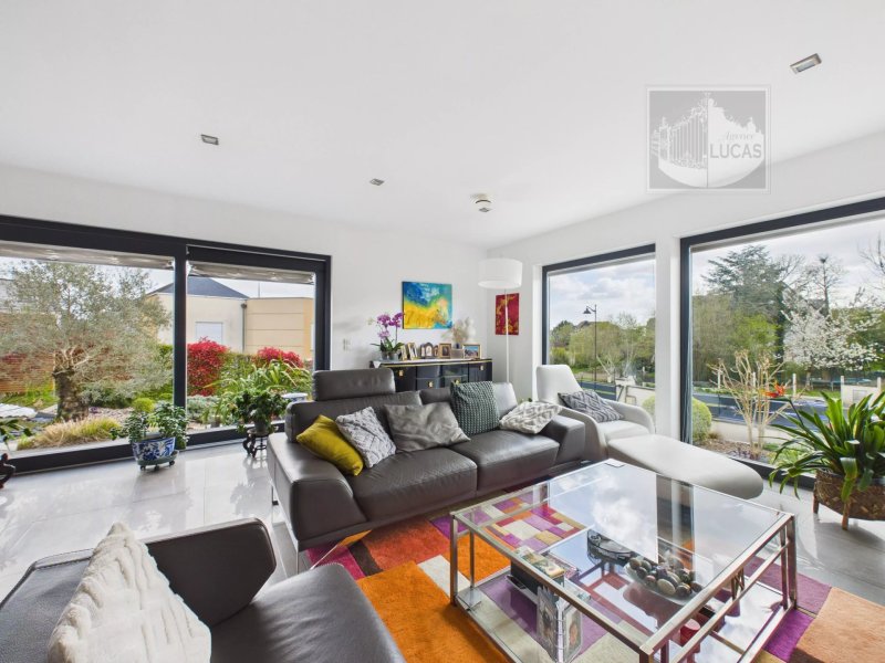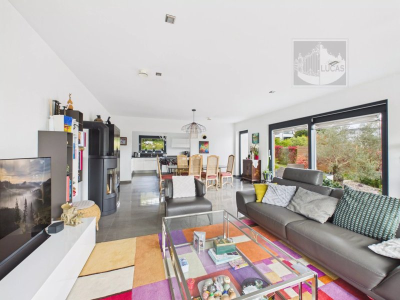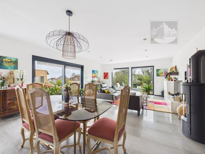 Implantée sur un terrain paysagé de 692 m², la maison développe environ 185 m² et bénéficie d’une triple exposition apportant une belle luminosité. Construite en 2012, elle dispose d’une conception écologique avec ossature bois, aérothermie, géothermie, pompe à chaleur et isolation performante (garantie constructeur 30 ans).