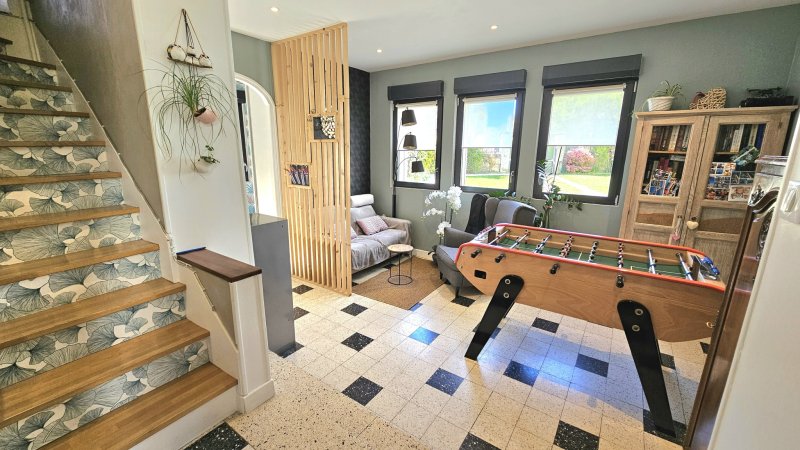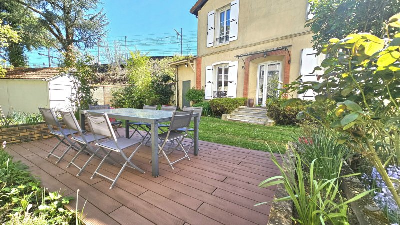VERSAILLES Porchefontaine, à proximité immédiate de la gare RER C de Versailles Porchefontaine, de la place du marché de Porchefontaine, de ses commerces, belle maison indépendante de 1910, agrandie puis surélevée en 2020, en excellent état, de 125 m2 habitables et 182 m2 utiles incluant le grenier et le garage, sur parcelle exceptionnelle de 738 mètres carrés, comprenant : - En rez-de-chaussée : entrée, salon, séjour - salle à manger avec accès direct à la terrasse et au jardin, cuisine aménagée et équipée ouverte, buanderie/chaufferie, WC séparés, cellier, atelier, cave. - Au 1er étage : dégagement avec placard, 4 chambres dont une avec sa propre salle de douche, salles de bains, WC séparés. - Au 2ème étage sous combles : grenier partiellement aménagé d'une trentaine de mètres carrés au sol. - Jardin : beau jardin clos spacieux avec garage avec électricité, abri vélos et borne de recharge de véhicule électrique. Productions de chauffage par une chaudière au gaz Frisquet et d'eau chaude par un ballon électrique. Toiture refaite récemment. Bon DPE. Excellente sectorisation scolaire. Proche toutes commodités, gares, bus, écoles, stade, tennis, équitation, forêt, maison médicale avec médecins généralistes et spécialistes. Porchefontaine Immobilier, le spécialiste de votre quartier, Achat, Vente, Conseils et Location.
