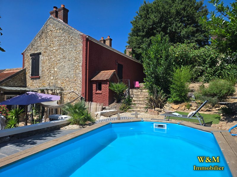 W, M Immobilier !!! Pour Amoureux de l'ancien : Vert-le-Petit, Maison individuelle de charme d'environ 150 M² habitables comprenant un double salon avec poêle à bois, une cuisine indépendante aménagée, 4 chambres dont 2 suites parentales, 3 salles de douches, 2 caves voutées, un atelier, combles aménageables de 40m2, une piscine en bois semi enterrée, le tout sur 770 m² de terrain arboré sans vis-à-vis. Toiture et fenêtres neuves; électricité et plomberie récentes.