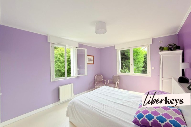 oRez-de-chaussée : hall d'entrée, séjour-cuisine lumineux de 54 m² avec cheminée à insert, cuisine aménagée et équipée (2018), 3 chambres (14, 12 et 12 m2), salle de bain, WC indépendants, buanderie fonctionnelle de 16 m² avec accès jardin.
