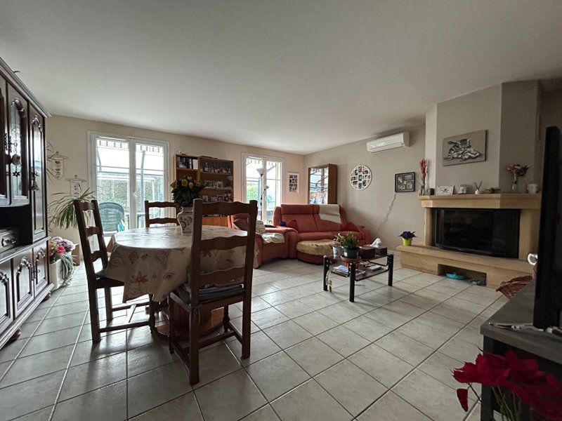 séjour double de 30 m² baigné de lumière avec cheminée insert, cuisine aménagée fonctionnelle, WC indépendant, garage de 26 m², une terrasse agrémentée d'une véranda amovible, parfaite pour profiter de l'extérieur en toute saison. À l'étage : palier desservant 4 chambres, dont une suite parentale avec salle d'eau et rangements, salle de bains et un WC séparé.