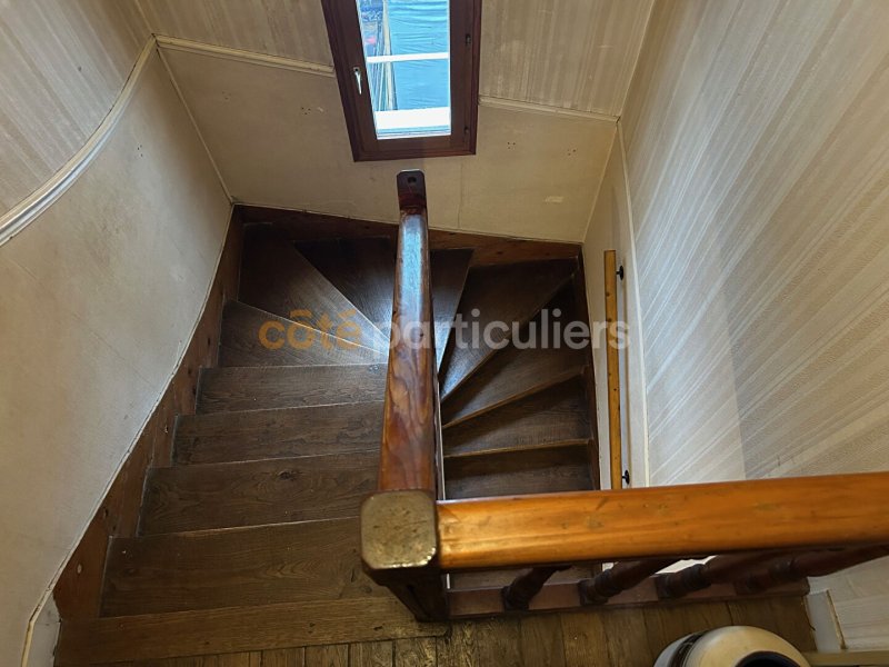 À l'étage : un palier desservant deux chambres ainsi qu'une salle de bains avec WC.