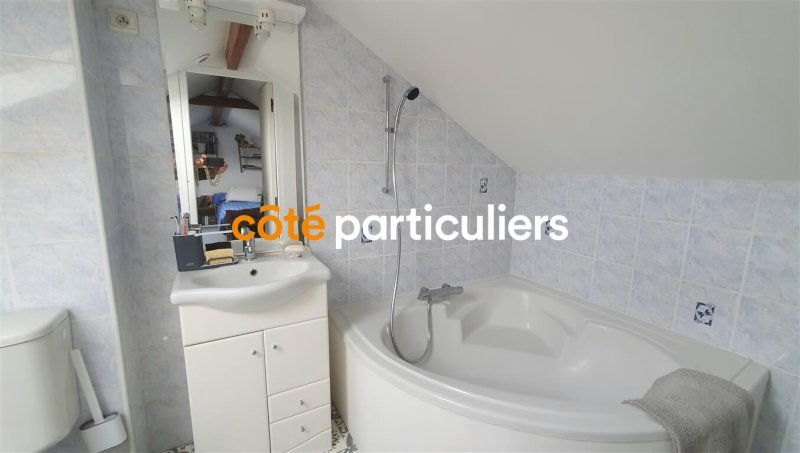 A l'étage : palier desservant une chambre sous combles avec salle de bains et WC.