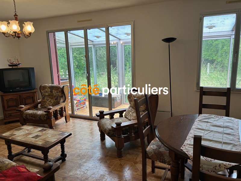 Maison de plain pied sur un grand terrain de 1250 m². La maison est édifiée sur vide sanitaire et comprend : sas d'entrée, entrée, salon salle à manger donnant sur une véranda, cuisine, dégagement avec placard, 4 chambres dont deux avec placards, salle de bains, WC. Surface habitable de 105 m² Garage attenant de 14 m² environ Abri de jardin en fond de parcelle.