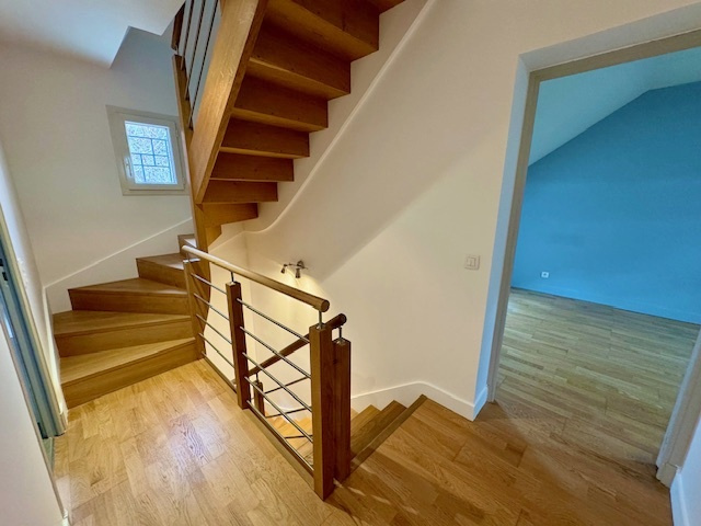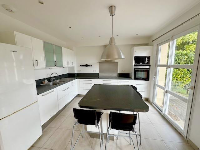 L'AGENCE DE VILLENNES vous propose en exclusivité, une jolie maison BBC située dans un quartier calme et résidentiel sur les hauteurs de VILLENNES (quartier de Breteuil). Elle se compose d'une grande entrée ouvrant sur un lumineux séjour parqueté avec poele, une cuisine équipée ouverte, toilettes avec lave-mains. A l'étage: 3 chambres dont 1 suite avec salle d'eau et toilettes, dressing, une autre salle de bains, toilettes séparés. Au dernier niveau: grande pièce ou chambre avec salle d'eau et toilettes. Garage une voiture avec borne de recharge électrique, 1 place de parking. Terrain de 330m2 avec terrasse. Chauffage individuel gaz. Bus scolaires à proximité, gare de VILLENNES (futur RER E), accès rapide A13/A14.