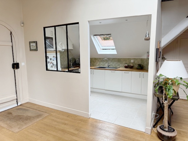 L'AGENCE DE VILLENNES vous propose un bel appartement rénové avec goût, intégré dans une grande maison des années 1900 située dans un quartier résidentiel recherché. Il se compose d'une entrée sur une lumineuse pièce à vivre avec cheminée et une belle poutraison d'origine, une cuisine équipée semi-ouverte, 4 chambres dont 1 avec placard, grenier dans le clocher, dégagement avec placard organisé en bureau, salle de bains, salle d'eau, toilettes. Un atout supplémentaire: Une jolie dépendance de 26 m2 composée d'une pièce pricipale, cuisine équipée donnant sur le jardin, salle d'eau, toilettes. Deux caves, 2 places de parking. Terrain arboré de 1400 m2 avec terrasse et jolie vue dégagée. La copropriété de 9 lots bénéficie d'un court de tennis en commun. A moins de 10 minutes à pied du centre, commerces, écoles et gare de Villennes (futur RER E). Accès rapide A13/A14.