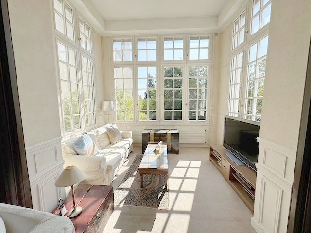 L'AGENCE DE VILLENNES vous propose au coeur du village de VILLENNES, à deux pas de la gare SNCF (futur RER E), cette propriété de caractère ayant conservé le charme de l'ancien avec une exceptionnelle poutraison et plafond à caissons, ses belles boiseries et vitraux. Au rez de chaussée: hall d'entrée avec vestiaire desservant une réception avec cheminée monumentale et une belle hauteur sous plafond, une lumineuse salle à manger et un salon de télévision, cuisine équipée dinatoire, toilettes avec lave-mains. Un bel escalier mène à l'étage qui se compose de 3 chambres dont deux se partagent une terrasse offrant une jolie vue sur le jardin, salle de bains. Au dernier niveau: deux chambres, un coin bibliothèque, salle d'eau. Au rez de jardin: un petit salon, salle d'eau avec toilettes, buanderie, chaufferie gaz, cave. Une dépendance de 42 m2 comprend 2 pièces (bureaux), une salle d'eau avec toilettes, (idéal pour profession libérale). Garage attenant pour un véhicule. La maison bénéficie d'un magnifique terrain arboré de 1402 m2 agrémenté d'une superbe piscine chauffée et d'un appentis. A pied de l'école primaire et des commerces. Accès rapide A13/A14,l'Express A14 vers la Défense, gare de Villennes (20 minutes de St Lazare) .