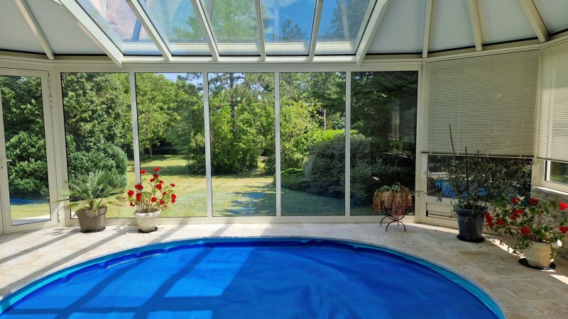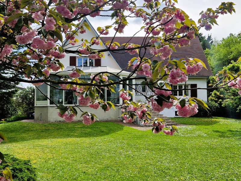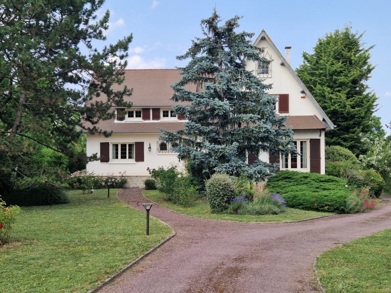 L'AGENCE DE VILLENNES vous propose une magnifique propriété dont le terrain arboré et paysager de 3 746 m2 est exceptionnel, à 10 minutes à pied du joli centre de VILLENNES et de ses commerces. La maison d'une surface utile de 284 m2 se compose au rez de chaussée d'un hall d'entrée desservant un vaste salon/salle à manger avec cheminée et marbre au sol donnant sur une grande terrasse orientée sud, belle cuisine équipée avec îlot central, une grande véranda abritant une piscine chauffée avec coin balnéo, bureau, 2 grandes chambres avec placard, salle de bains, toilettes. A l'étage: un palier mezzanine, 2 chambres, salle de bains avec toilettes, salle de jeux de 62 m2 (beau potentiel). Un sous-sol total avec garage pour 3 véhicules, atelier, chaufferie pompe à chaleur et panneaux photovoltaiques en toiture, buanderie et cave. Proche de la gare SNCF de VILLENNES (futur RER E), accès rapide A13/A14, Express A.