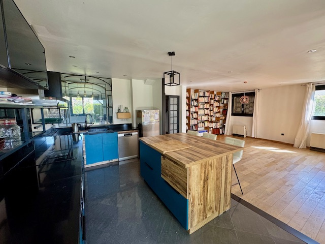 L'AGENCE DE VILLENNES vous propose cette belle maison familiale traditionnelle entièrement rénovée, située dans un domaine de standing sécurisé avec piscine et tennis. A deux pas du golf de VILLENNES, du complexe sportif et de la maison médicale, elle se compose d'une entrée, d'une cuisine équipée ouverte sur un vaste et lumineux séjour de 50m2 valorisés par des verrières de style industrielle, belle terrasse en avancée sur le jardin, 2 chambres avec placard dont une avec salle d'eau, dégagement, toilettes avec lave-mains. A l'étage: grand palier pouvant servir de bureau ou de salon télévision, 4 chambres dont 3 avec placard, 2 salles de bains, toilettes séparés. Garage pour 1 voiture, coin buanderie. Le terrain de 950m2 est bien clos et sans vis à vis. A 5 minutes en voiture du centre de Villennes et de ses commerces, de la gare SNCF (futur RER E- 20 minutes de St Lazare), bus scolaires vers Poissy-Le corbusier, Lycée international de St Germain en Laye et Notre Dame les Oiseaux à Verneuil. Accès rapide A13/A14 et Express A14 vers la Défense.