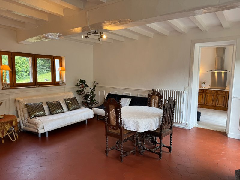 Lumineuse, traversante (sud-est / ouest) et de caractère, elle offre au rez-de-chaussée : une entrée, une cuisine traversante donnant accès à deux grandes terrasses avant et arrière, un cellier, un double séjour lumineux avec poutres en chêne, tomettes et cheminée, une grande chambre avec placards intégrés et espace home cinéma, une salle de bains attenante avec baignoire, un WC séparé et un coin bureau.