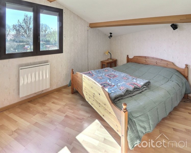 Les agences TOIT ET MOI vous présentent cette maison située au calme, et bien exposée. Elle comprend au rez-de-chaussée une entrée, un salon avec accès direct sur l'extérieur et exposé plein sud, une cuisine ouverte sur une salle à manger, deux chambres dont une de plus de 20 m², une salle d'eau, et un garage avec espace atelier.