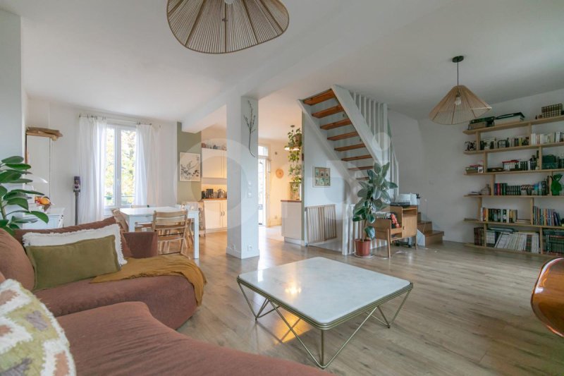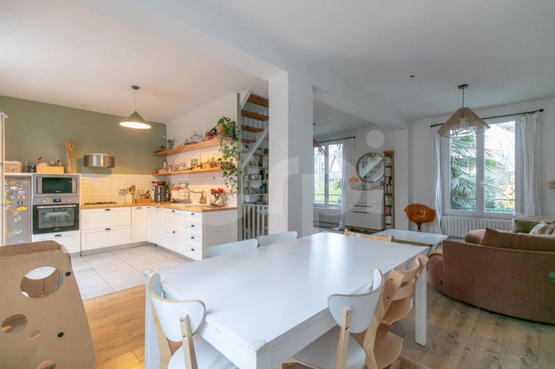 Maison ancienne entièrement rénovée, isolée et modernisée. Entrée en rez-de-jardin, WC, au rez-de-chaussée surélevé un vaste séjour de 35m² vous accueille avec cuisine ouverte entièrement équipée avec accès sur terrasse et jardin par un escalier. Au premier étage deux chambres, dressing, salle de bains avec WC. Au deuxième étage chambre, salle d'eau avec WC. Cave totale avec petit garage (19m²), chaufferie gaz, buanderie. Jardin clos.
