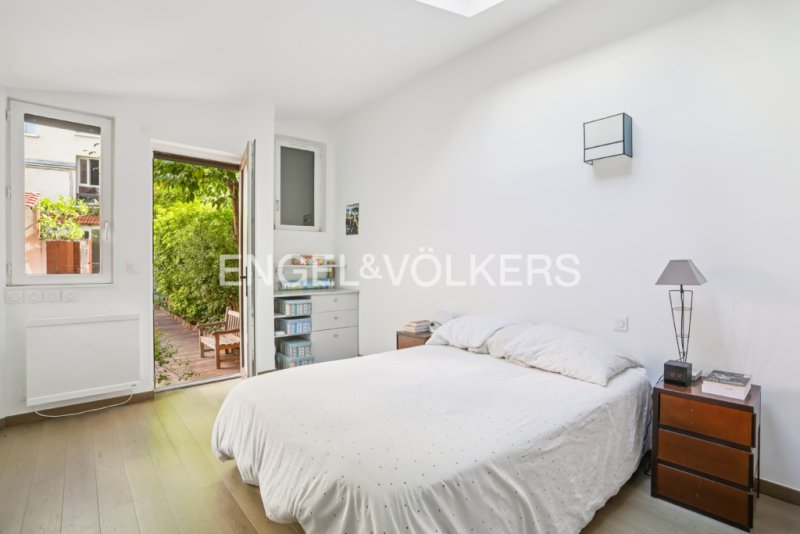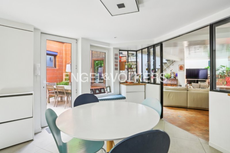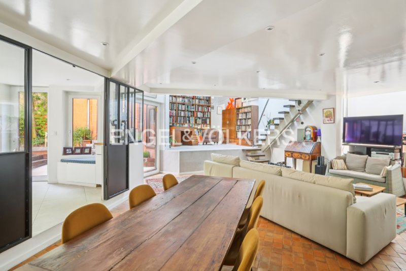 Cette maison nichée au calme complet offre tout le charme d'un ancien atelier réhabilité par un architecte dans les années 60 avec des volumes originaux et une très belle terrasse verdoyante de plain-pied, idéale pour les réceptions ou les repas en famille
