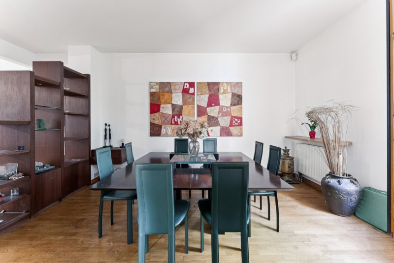 - Au RDC : entrée par un jardin de 55 m², double séjour avec salle à manger séparée (56m²) donnant accès une terrasse de plain-pied de 44 m², idéale pour recevoir, une cheminée fonctionnelle, cuisine indépendante et WC séparés.