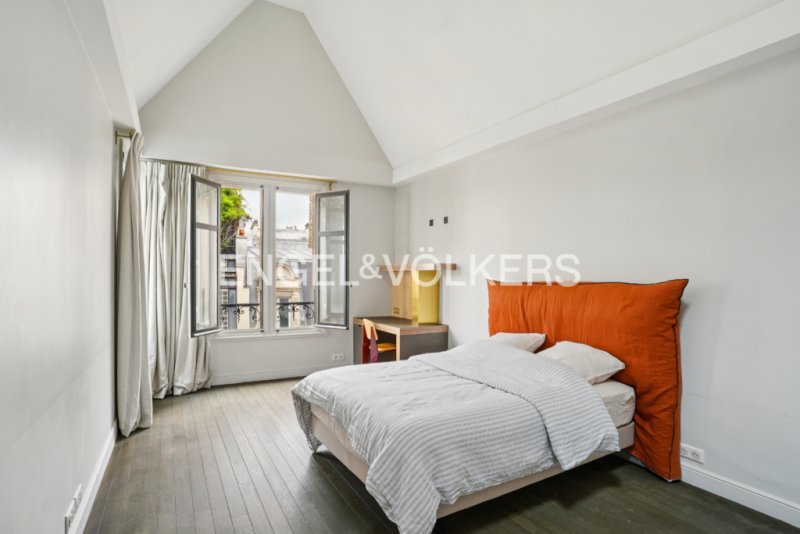 La suite parentale est une pièce maîtresse : plus de 5 mètres de hauteur sous plafond, un dressing sur mesure, et une salle de bain luxueuse en font un lieu à part, où volumes et élégance se conjuguent avec un confort absolu.