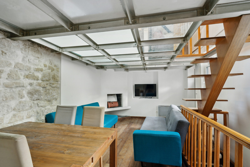 Ce cocon original et très chaleureux a une superficie totale de 58 m2 au sol (dont 35.49m2 loi Carrez). Il est équipé de radiateurs récents ainsi que de fenêtres triple vitrage au RDC et d'un vélux en mezzanine, le tout exposé sur cour orientée plein sud et sans vis-à-vis.