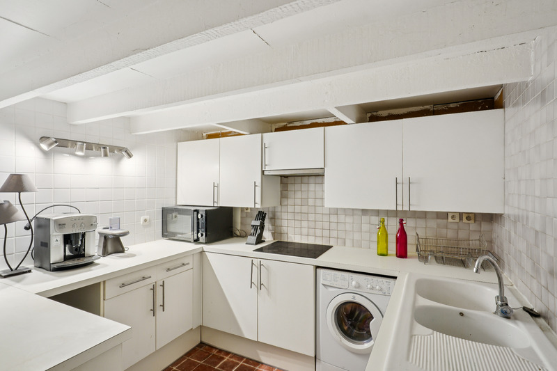 - au niveau inférieur, accessible par un escalier en bois, une cuisine équipée et aménagée avec rangements, ouverte sur un espace salle à manger ou bureau voire dressing selon usage, de 16 m2. Tomettes au sol.