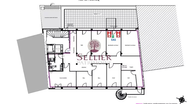 Accueil traversant, double accès, zone réception + local sur rue (35 m²). Idéal pour : pôle santé, formation, showroom, agence, conciergerie, accueil client.