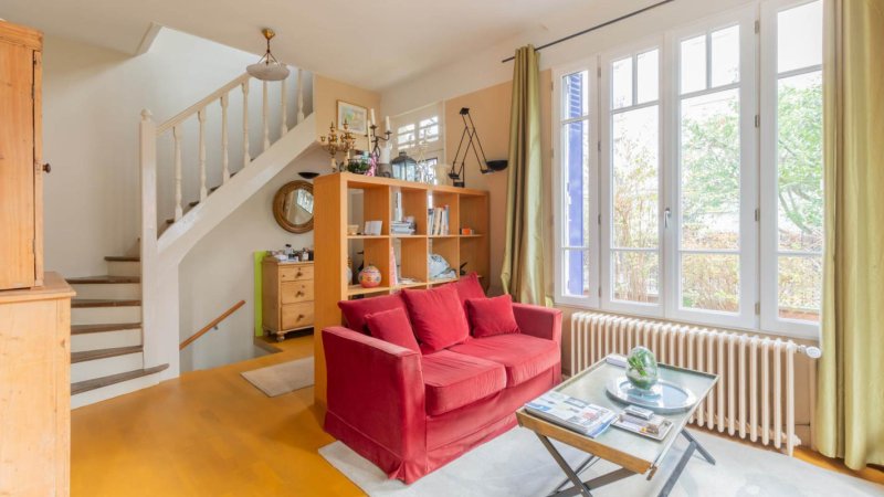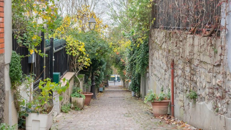 Située dans le charmant quartier de la Mouzaïa, cette maison avec jardinet offre un véritable cadre « villageois » en plein Paris : ruelles pavées, petites villas fleuries, atmosphère paisible, végétation omniprésente et nombreuses allées privées.