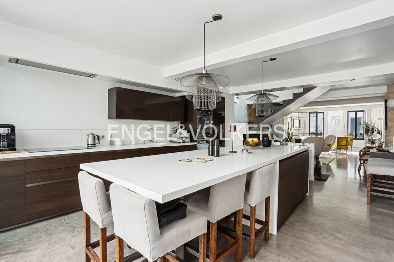 Au coeur du 20ème arrondissement, à proximité immédiate des commerces et des transports du quartier Jourdain, Engel & Völkers vous invite à découvrir une propriété rare de 241 m² Carrez (370 m² au sol). En parfait état, cette demeure singulière déploie des volumes généreux sur trois étages, offrant un cadre de vie baigné de lumière, sublimé par un sol en béton ciré et au calme absolu .