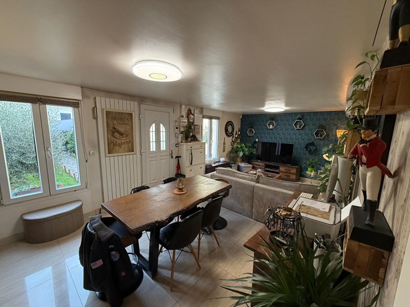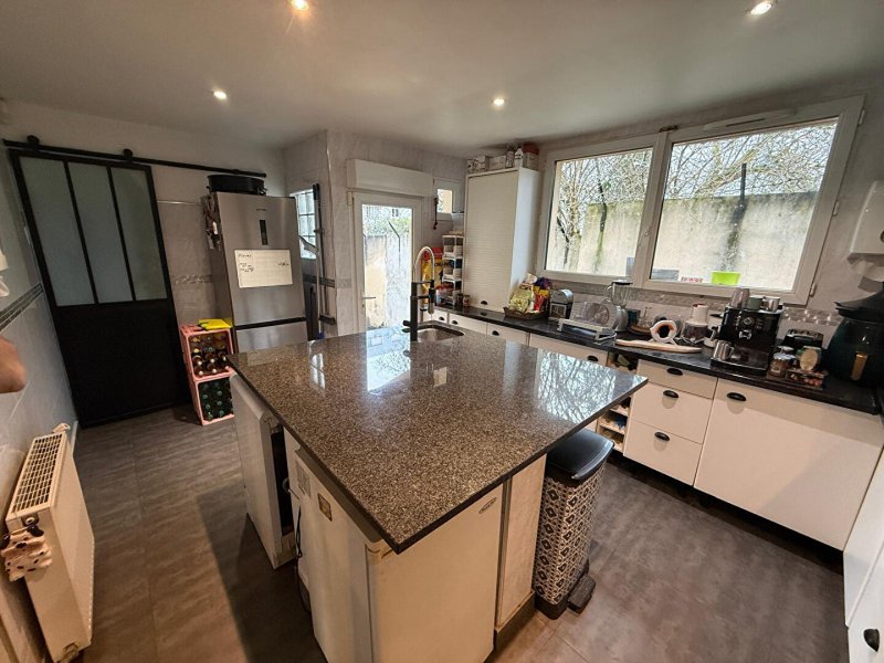 - Au rez-de-chaussée, vous découvrirez une entrée, un spacieux salon - salle à manger de 30 m², une cuisine équipée et aménagée avec îlot central ainsi qu'une salle d'eau avec WC.