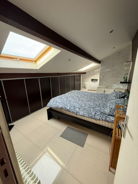 - Au deuxième étage, une suite parentale avec baignoire, douche et WC.