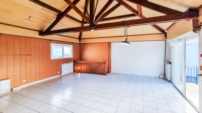 Composée d'une cuisine semi-séparée, un séjour avec une belle hauteur sous plafond.