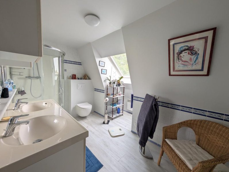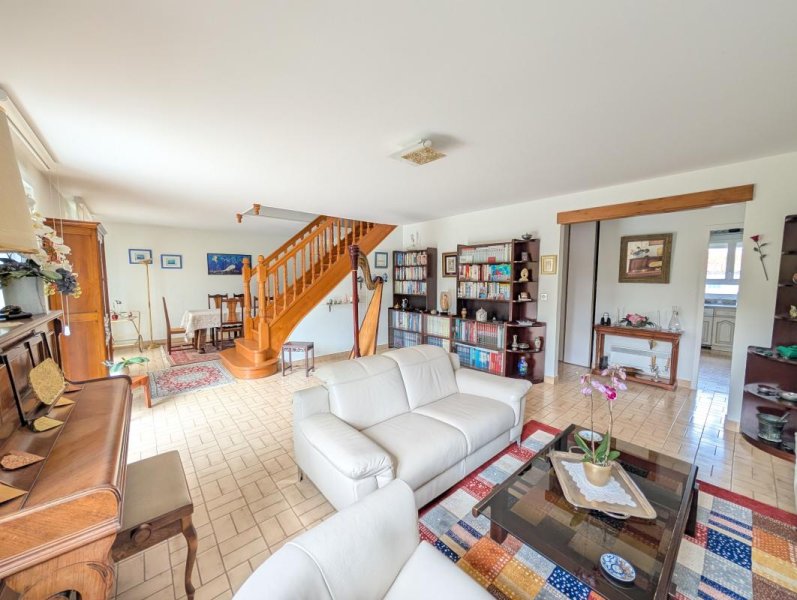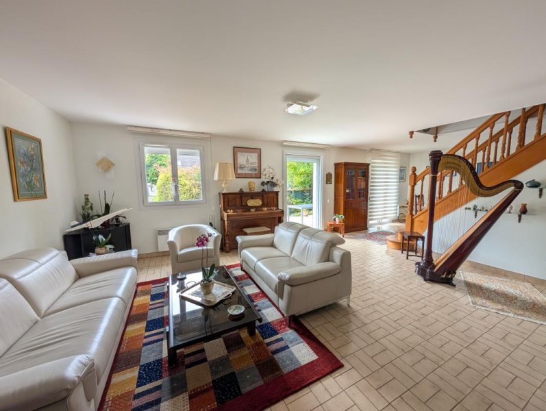 Situé dans un quartier calme et résidentiel proche des écoles, centre aéré, boulangerie, bus pour RER. L'entrée dessert un vaste séjour avec accès direct sur la terrasse et le jardin, cuisine aménagée, deux chambres au rez-de-chaussée avec salle de bains et WC. Au 1er étage palier desservant deux grandes chambres, salle d'eau et WC. Le jardin est sans vis-à-vis. Sous-sol total avec garage double, atelier, buanderie, cave.