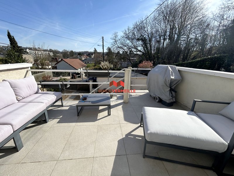 Dans quartier recherché pour la proximité de la gare SNCF, des commerces, des écoles et de la forêt, venez découvrir cette maison en copropriété sur 3 niveaux comprenant en RJ : une entrée, une chambre d'amis avec SDE, une salle de jeux, une buanderie/chaufferie ; au RDC surélevé : une cuisine équipée, un grand séjour cheminée/salle à manger sur terrasse Sud, un WC et une chambre ; à l'étage : 3 grandes chambres, 1 WC, 1 SDB et accès grenier. 2 garages et un emplacement de parking complètent ce bien ; IDEAL FAMILLE !