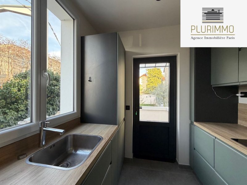 Bourg la Reine. Au fond d'une impasse, maison entièrement refaite à neuf de 102m2 au sol (88m2 loi Carrez) avec Jardin de 235m2 et garage. Elle se compose d'une entrée, un double séjour avec cuisine attenante donnant accès au jardin, un wc invité. A l'étage, deux chambres et une salle de bains avec wc. Au dernier étage une chambre et une salle de douche avec wc. Sous sol total avec buanderie, rangements et garage.