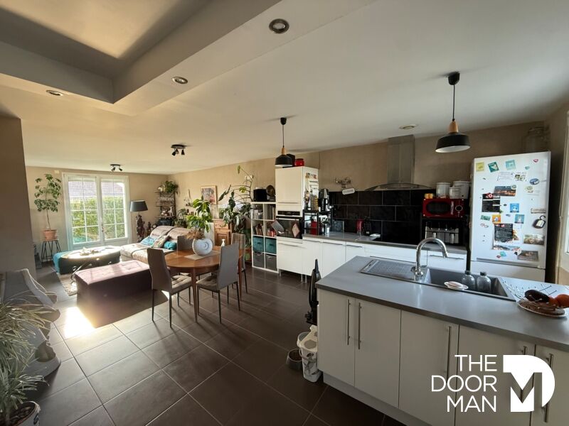 Dès l'entrée, vous découvrirez une belle pièce de vie spacieuse et lumineuse, composée d'une cuisine ouverte sur la salle à manger et le salon, créant un espace convivial et fonctionnel. L'ensemble s'ouvre directement sur une terrasse à l'arrière de la maison, sans vis-à-vis, idéale pour profiter pleinement des beaux jours en toute tranquillité.